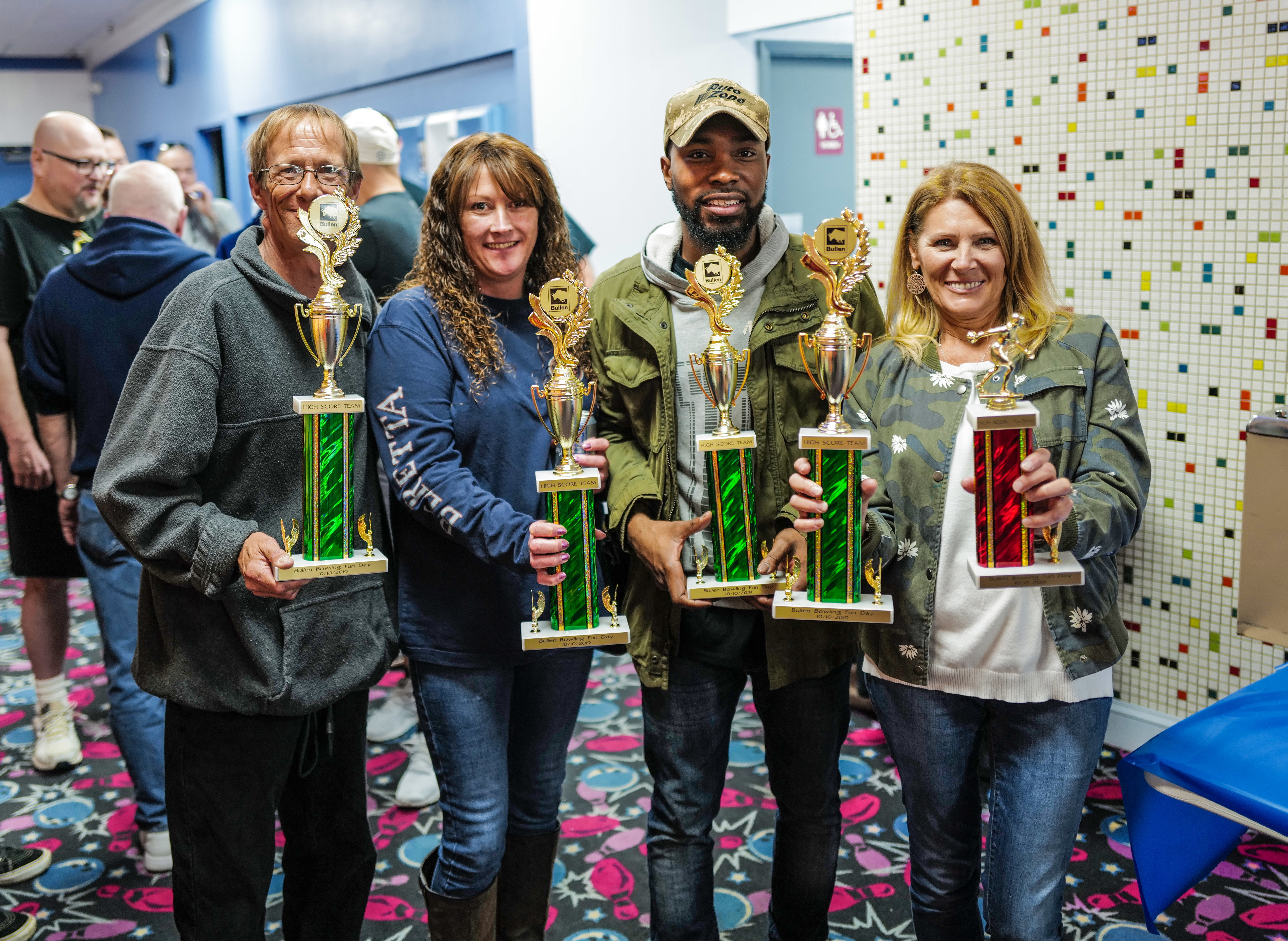 The entire Bullen Folcroft, PA team all met at Sproul Lanes (close to Bullen HQ) and spent 3 hours bowling and having FUN. Eight teams were throwing strikes, spares, and a few gutter balls but having FUN. In the end, team # 8 made up of Denise Evans, Juanita Russell, Jim Dwyer, Fred Murray won for the top team score. Steve Getty and Denise Evans posted male and female individual top scores for their trophies. Congrats to them and everyone, it was an excellent time for all, and we then got the rest of the day off.